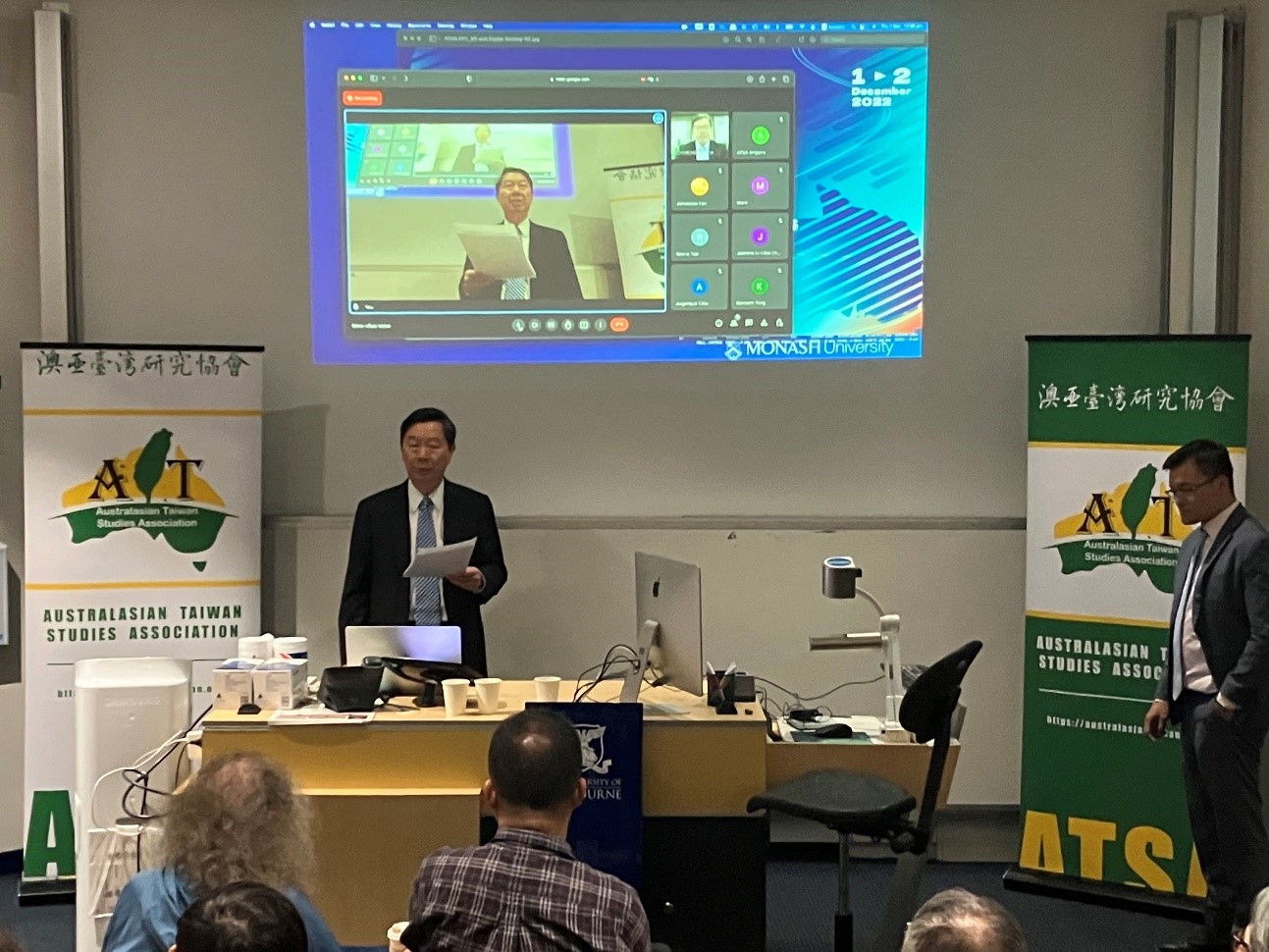 本次學術研討會於111年12月1日至2日假墨爾本大學文學院場地舉辦,除邀請我國駐澳常以立大使蒞臨開場致詞外,活動亦承蒙本會科教發展及國際合作處葉至誠處長以視訊直播致詞。