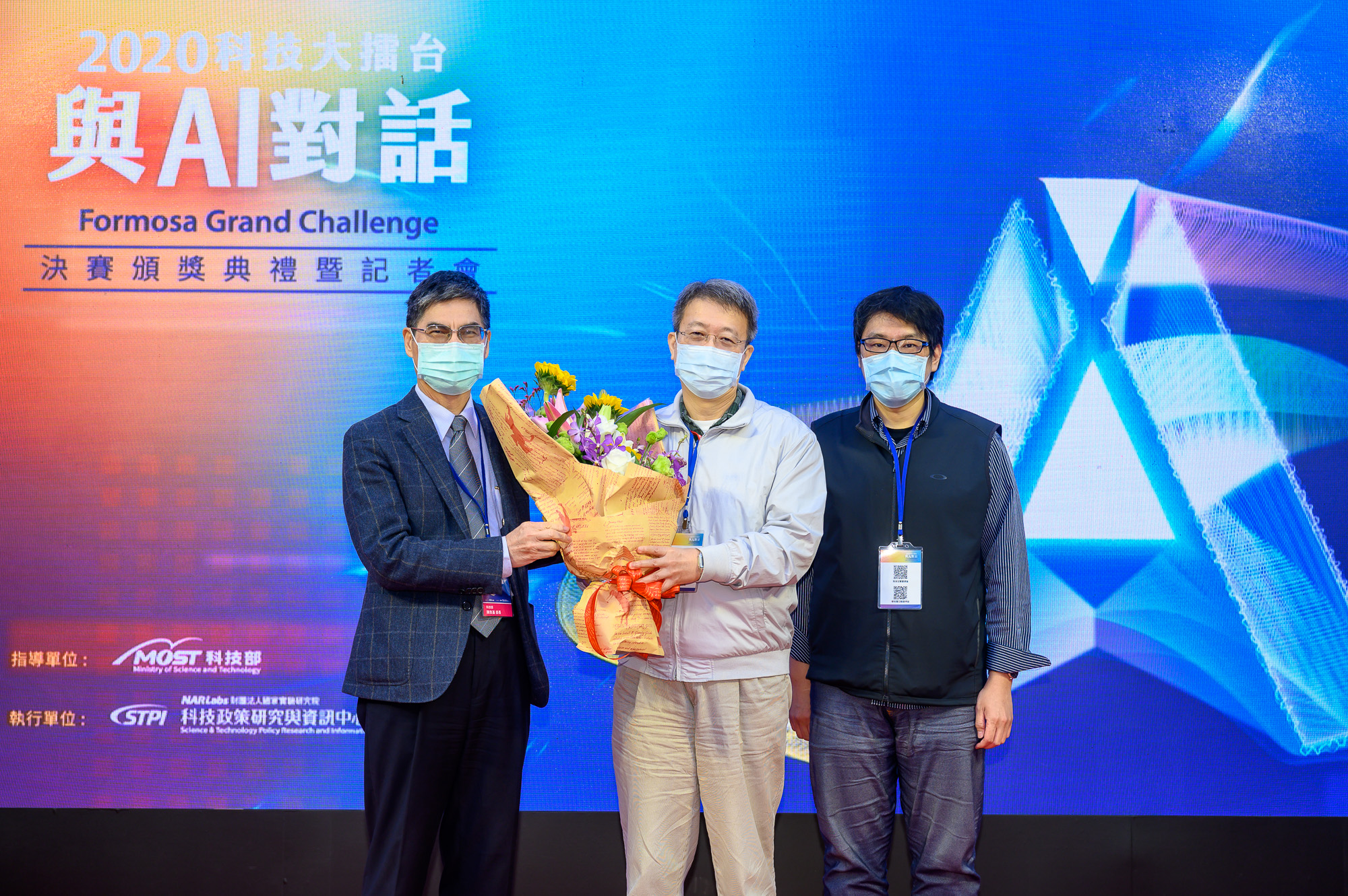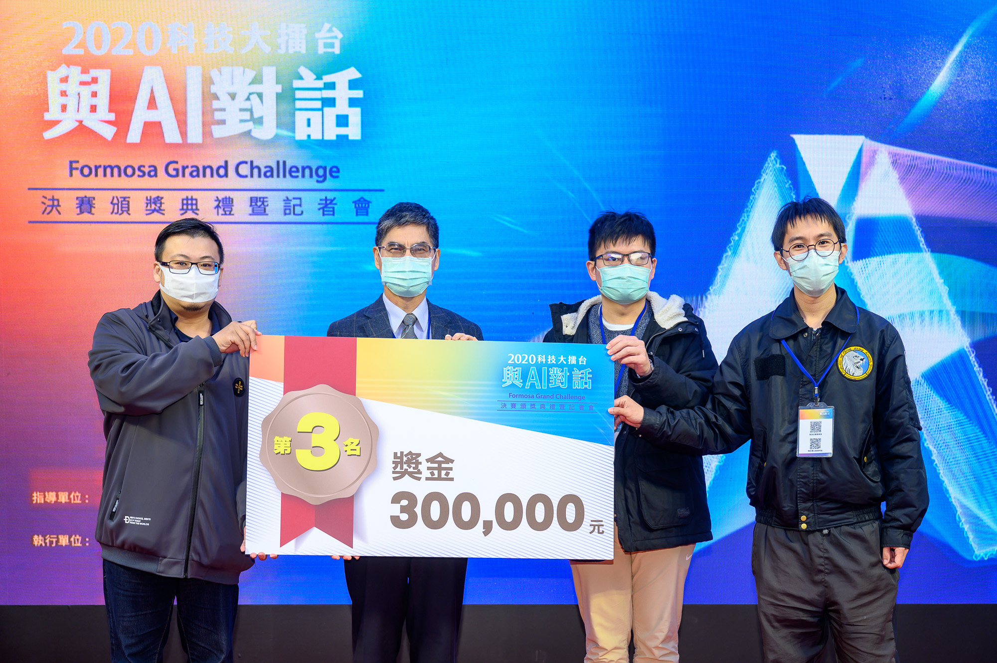 科技部部長陳良基頒獎給第3名「A Team」團隊獎金新臺幣20萬元