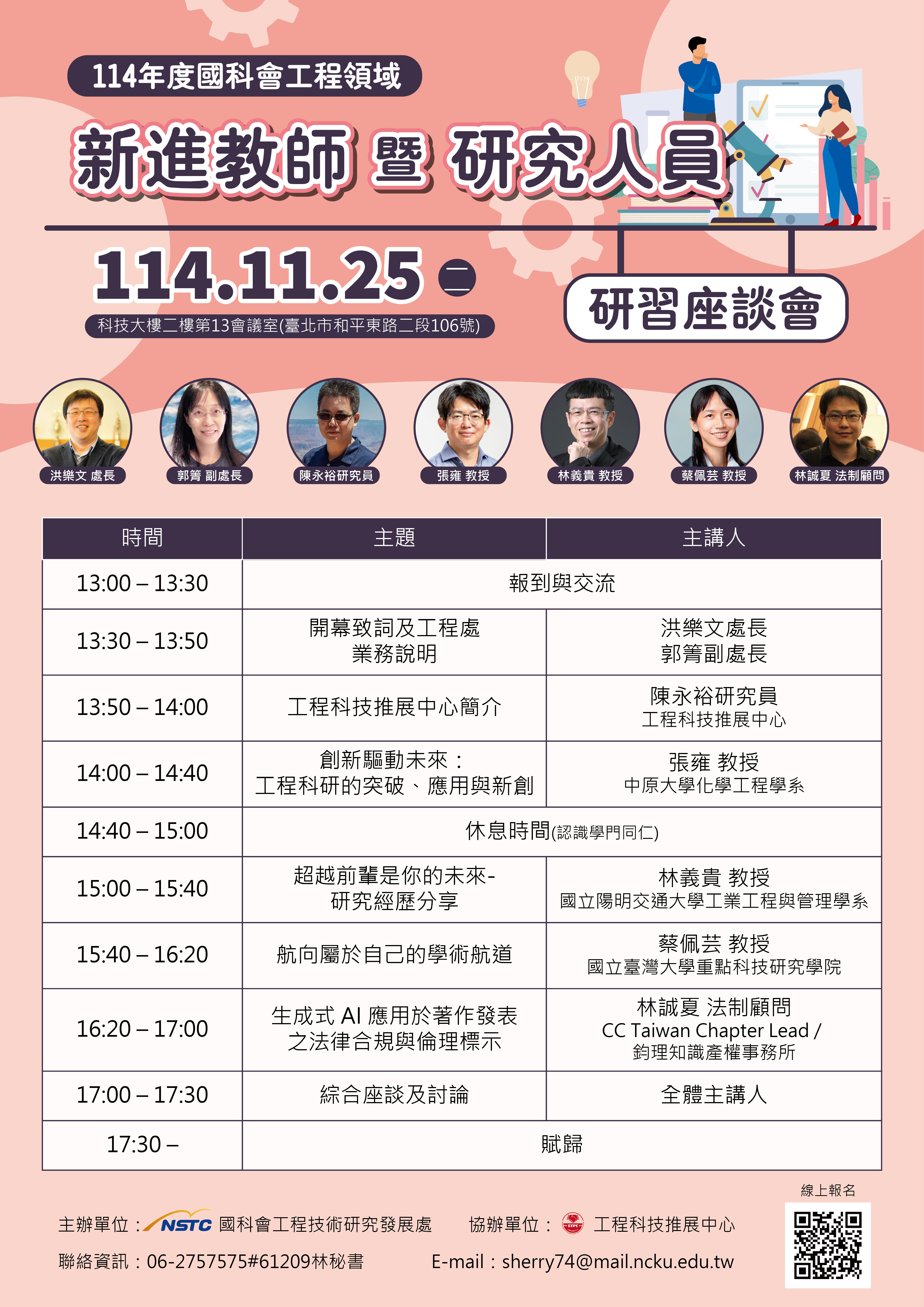 本次活動報名至11/20 (四) 截止,歡迎各位新進學者與研究人員踴躍報名。
