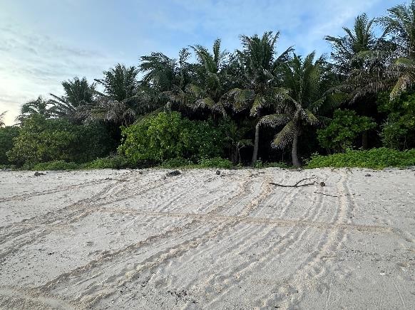 圖二每日早上的沙灘可見多道海龜爬痕,顯示南沙產卵海龜數量不低(國立海洋物博物館提供)