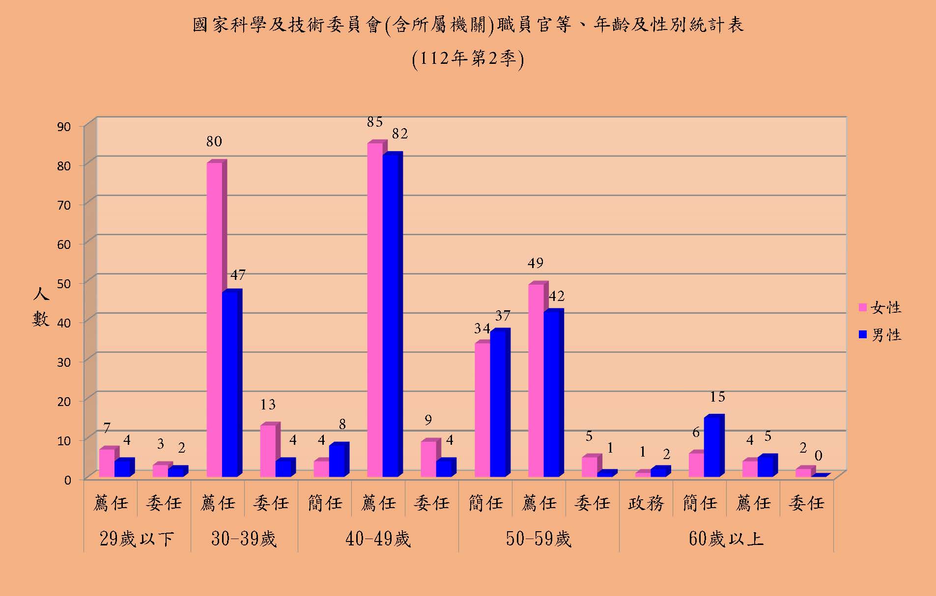 國家科學及技術委員會(含所屬機關)職員官等、年齡及性別統計表.jpg