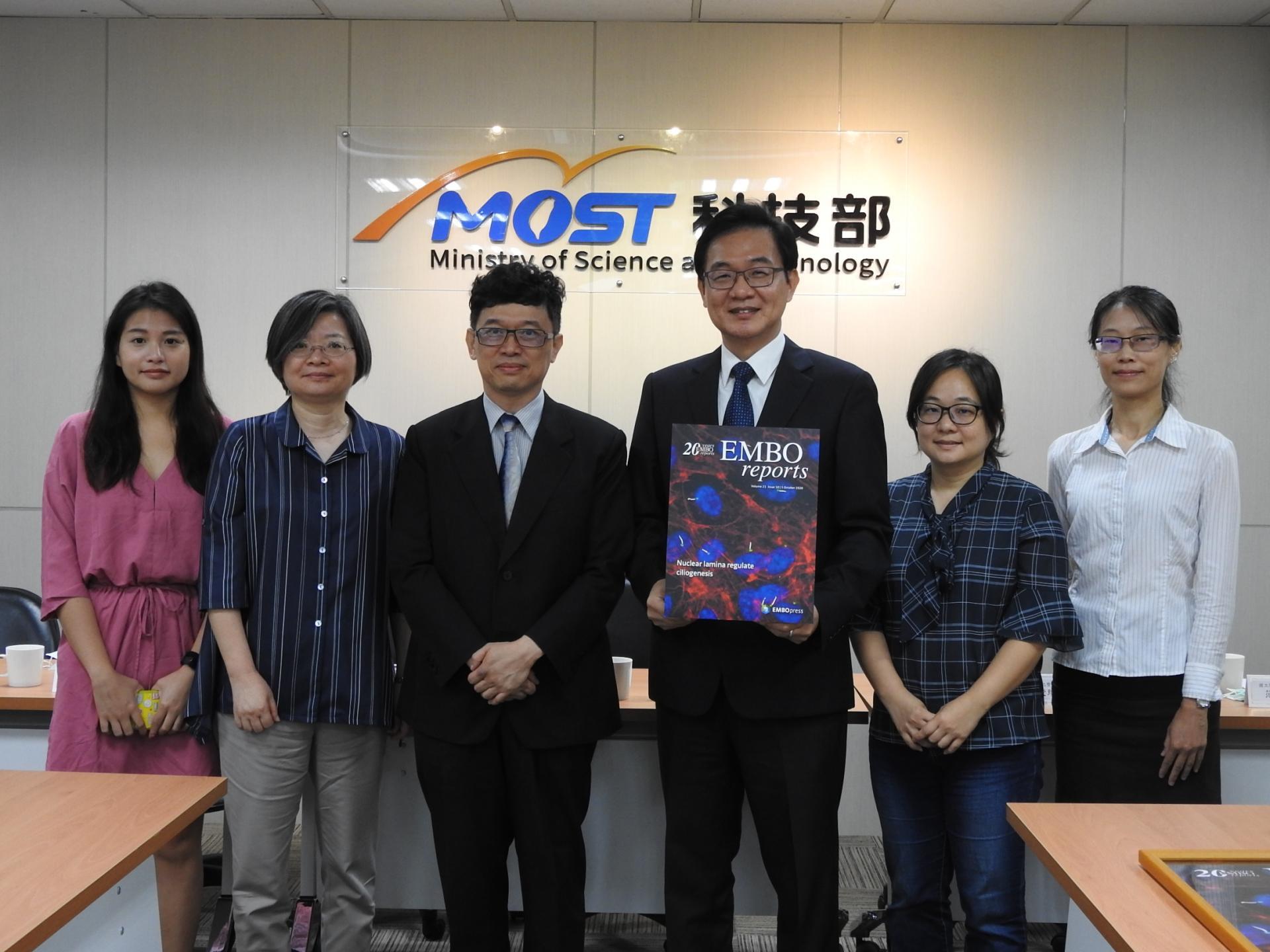 科技部長期深耕基礎研究,支持國內研究人員進行各項科學研究,補助優質團隊追求學術卓越,在生命科學領域探究生命奧秘、找尋疾病機轉,進而創造科技突破造福人群。本次成果即是在科技部長期補助下,由國立陽明大學生化暨分子生物研究所陳鴻震講座教授研究團隊,與國家衛生研究院生技與藥物研究所紀雅惠副研究員合作發現,細胞初級纖毛(primary cilium)的異常可能是導致罕見疾病「早衰症」重要的致病機轉,這個發現提供一個開發早衰症治療策略的新思維。這項傑出研究成果榮登歐洲分子生物學組織雜誌(EMBO Reports),並獲選為10月5日當期的封面。EMBO為國際知名生命科學領域組織,此一成果除受到國際重視外,也是將臺灣基礎科研實力推向國際的最佳典範。