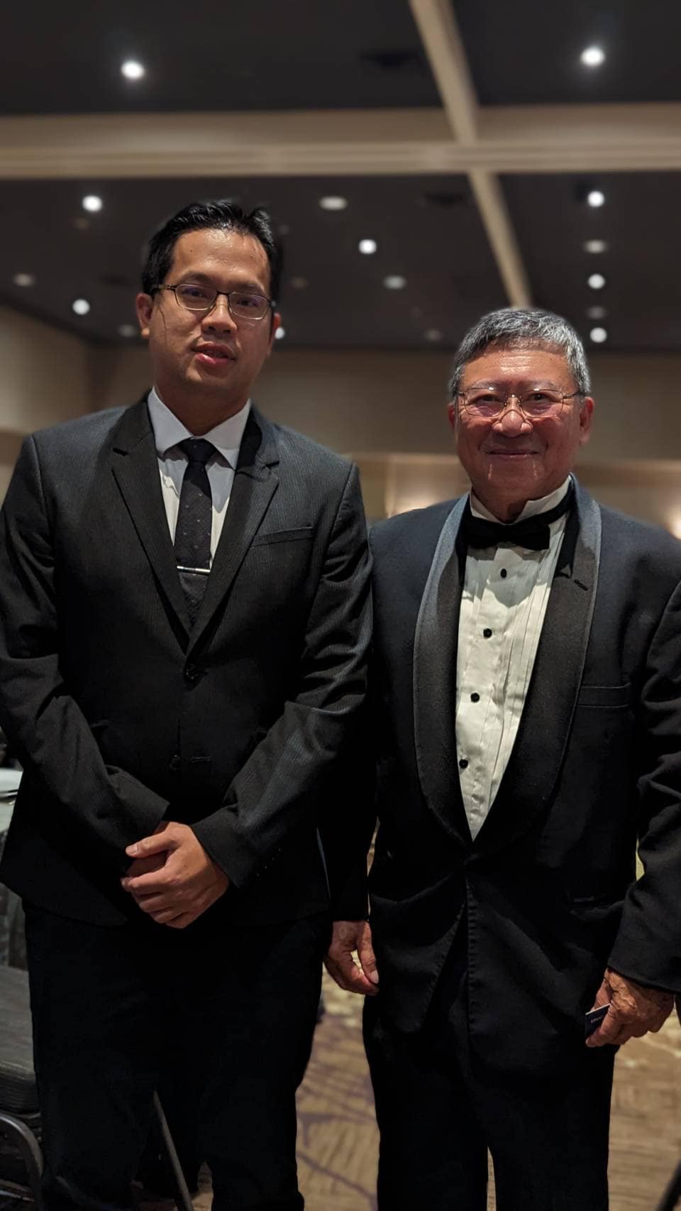 圖:陳嘉元組長與前鑽石吧市長林錫智(左圖)及前加州參議員Bob Huff(右圖)合影。