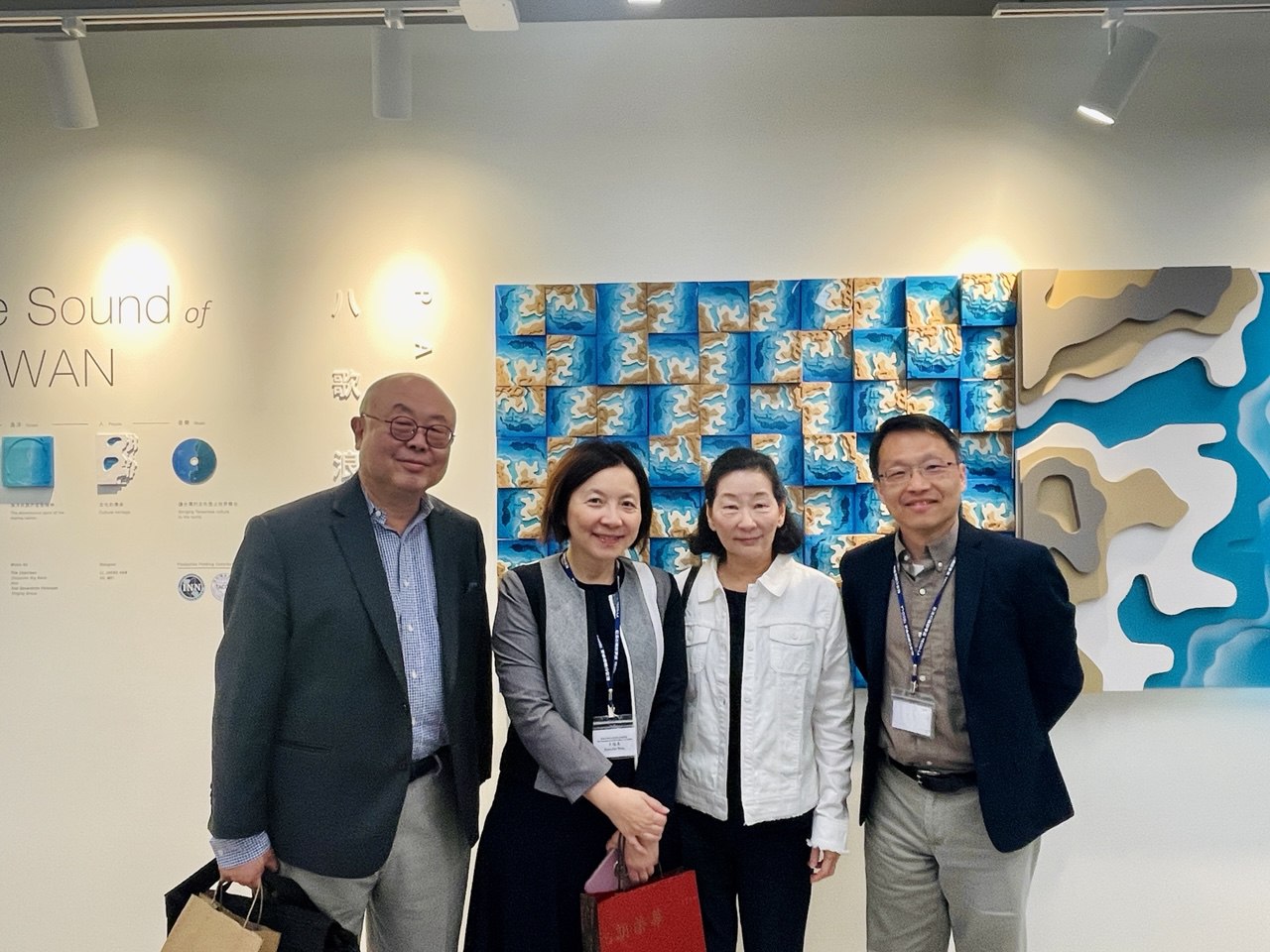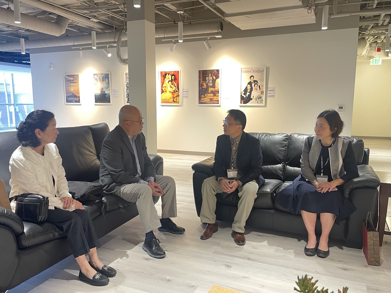 ↑(左起)安康院長、洛杉磯辦事處新聞組王冠惠組長、安院長夫人及周組長於本處3樓梯廳合影