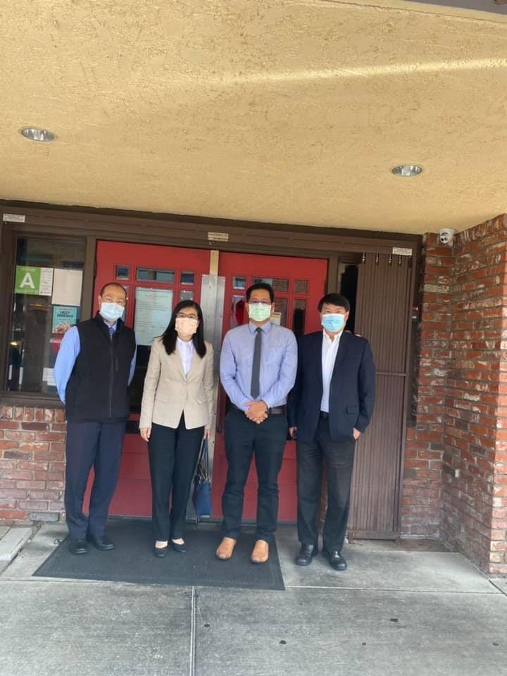 駐洛杉磯科技組組長陳嘉元偕秘書梅中楷,2021年9月2日與世界日報洛杉磯社兼舊金山社于趾琴社長及南加州大都會水利局資深工程師王竹青博士討論國際科技動態。
