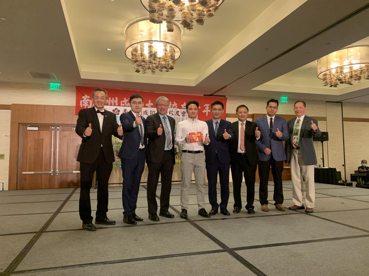 圖1:陳嘉元組長(右二)與出席南加州成功大學校友會年會的國立成功大學沈孟儒校長(右四)及該校校友合影。