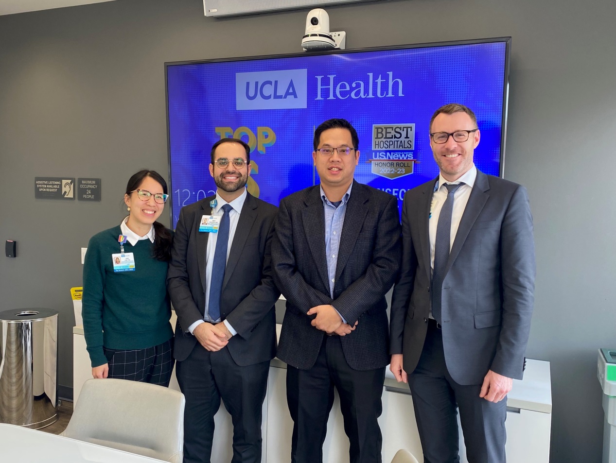 圖:陳嘉元組長(右2)拜會UCLA Health國際和業務發展服務部總監Michael Burke(右1)、全球策略與商業服務主任Jana Lim(左1)及業務發展主任Amer Fakhouri(左2)。
