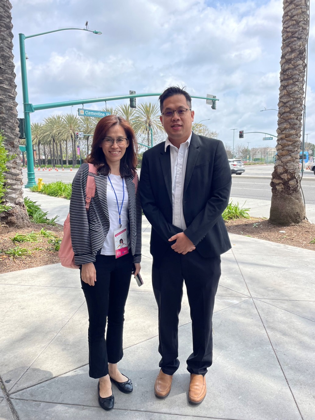 圖:駐洛杉磯科技組陳嘉元組長(右1)協助義守大學高中參加FIRST機器人競賽,並與該校黃教務主任(左1)合影。