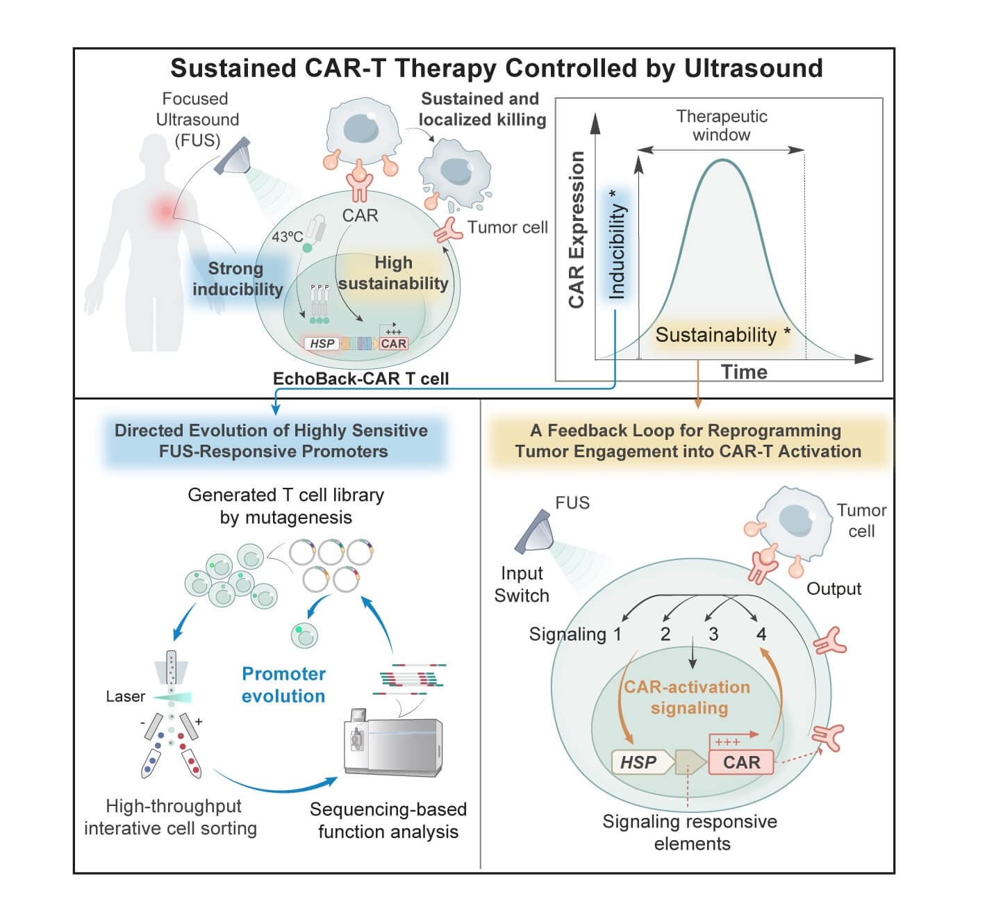 南加州大學(USC)研究團隊開發出一種創新的EchoBack CAR T細胞,為實體腫瘤的免疫療法帶來重大突破。這項技術結合了超音波控制與CAR T細胞療法,不僅能精準啟動免疫細胞,還能延長其作用時間(至少5天),超越傳統CAR T細胞的24小時限制。透過聚焦超音波作為遠端開關,這些細胞將於腫瘤區域開始作用,並持續發揮攻擊癌細胞的功能,兼具高效性與安全性。更重要的是,EchoBack CAR T細胞具備自我降解機制,當離開腫瘤區時將失去活性,避免對正常組織造成損害,展現出高度智慧與辨識能力。該技術透過老鼠實驗中已針對前列腺癌(prostate cance)與腦部神經膠質母細胞瘤(glioblastoma)展現出卓越療效,不僅提升殺傷力,也降低細胞疲乏現象。此技術不僅具備模組化潛力,有望擴展至乳癌等多種實體腫瘤,且有機會大幅減少病人接受治療的頻率,為未來的癌症免疫治療開啟更安全、有效且友善的新篇章。研究成果發表於《Cell》期刊。