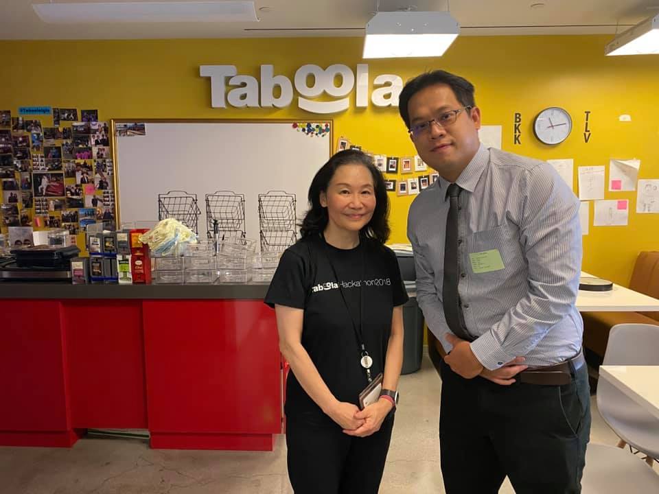 駐洛杉磯科技組陳嘉元組長偕梅中楷秘書於9月16日拜會Taboola 研發部副總裁俞寧寧女士,討論科技部「博士創新之星計畫(LAEP)」培育臺灣高階科技創新創業人才相關事宜,關切目前在Taboola實習之「博士創新之星計畫」學員官志誼博士及鄒博年博士來美後生活近況。
