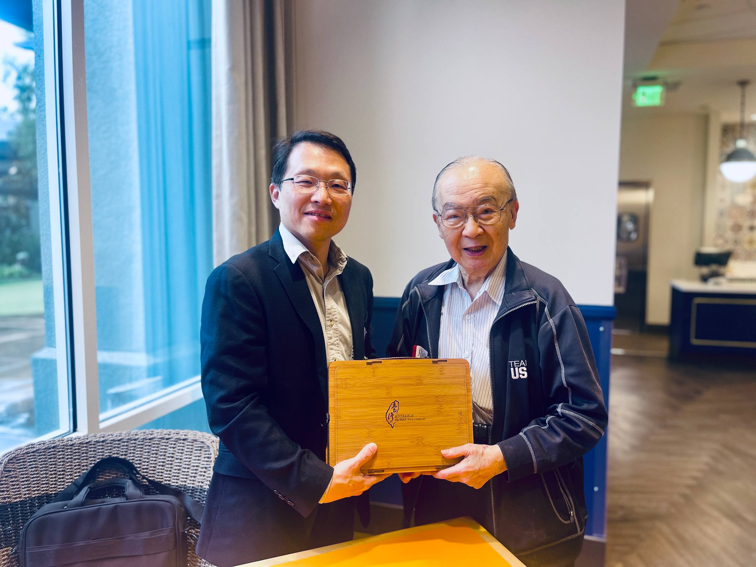 ↑ UCSD鍾子平教授(左)與周立偉組長(右)合影