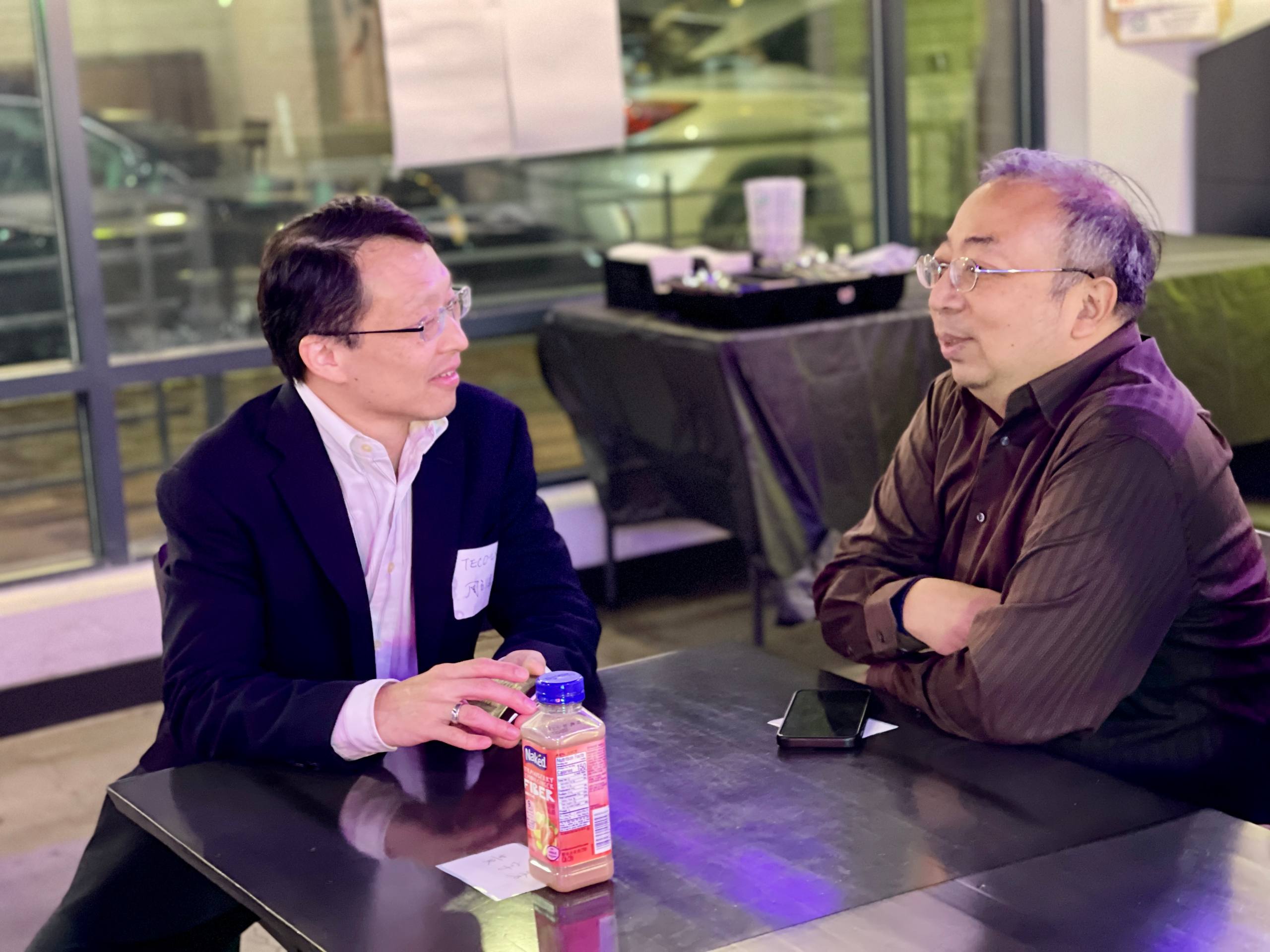 ↑ 周立偉組長與普林斯頓大學Samual Wang教授討論生醫科技及研發成果橋接產業的經驗。