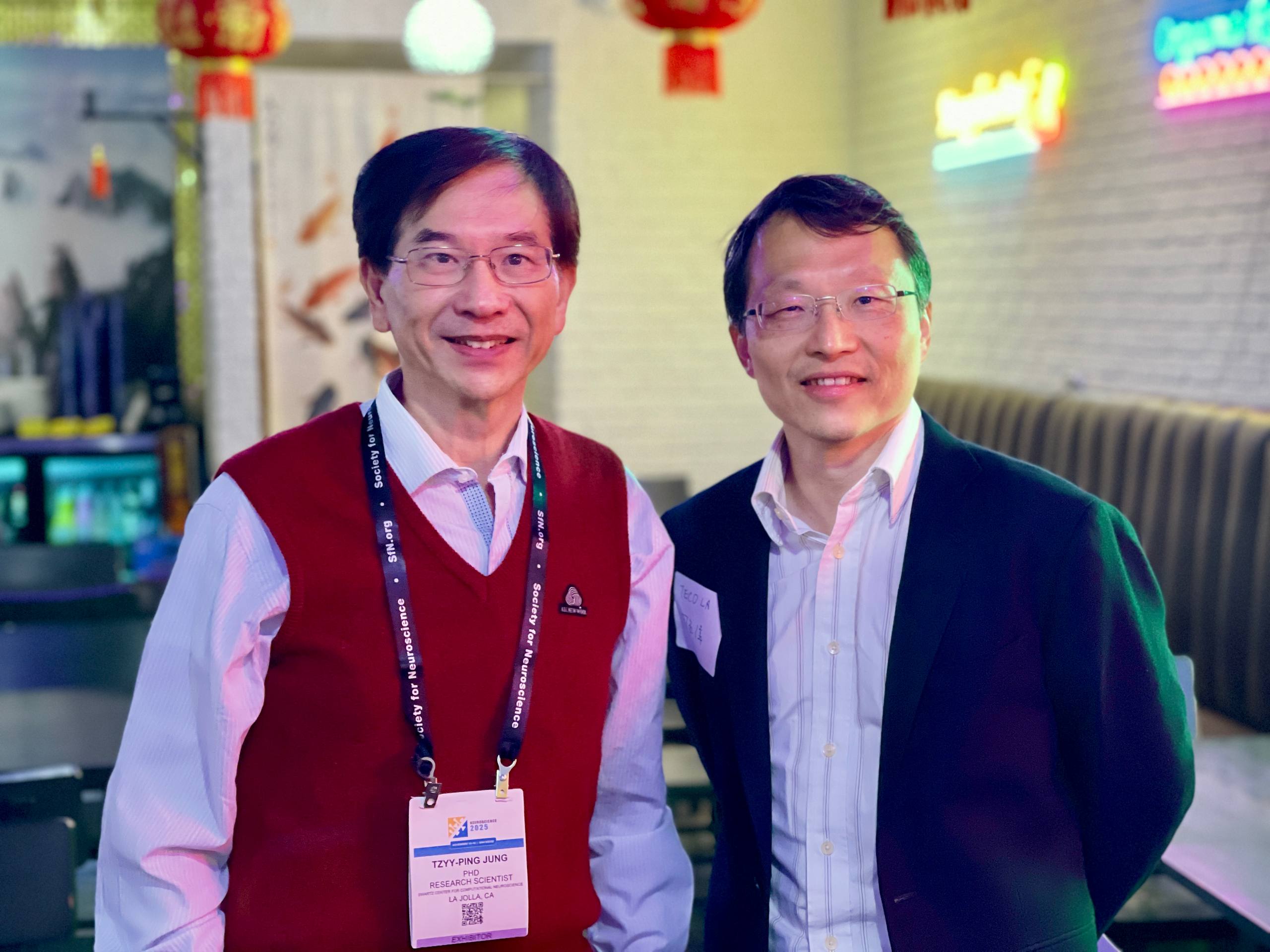 11月14-16日,周立偉組長偕王詩媛秘書赴聖地牙哥轄訪,期間拜會加州大學聖地牙哥分校(UCSD)錢煦院士,並且參加美國神經科學學會年會(Society for Neuroscience)及台灣神經科學學會於期間舉辦之「台灣之夜」🇹🇼活動,與來自美國各地及台灣神經科學領域專家學者暢談,交流相關科研發展,並持續討論臺美共同舉辦雙邊生醫年會之可行性。