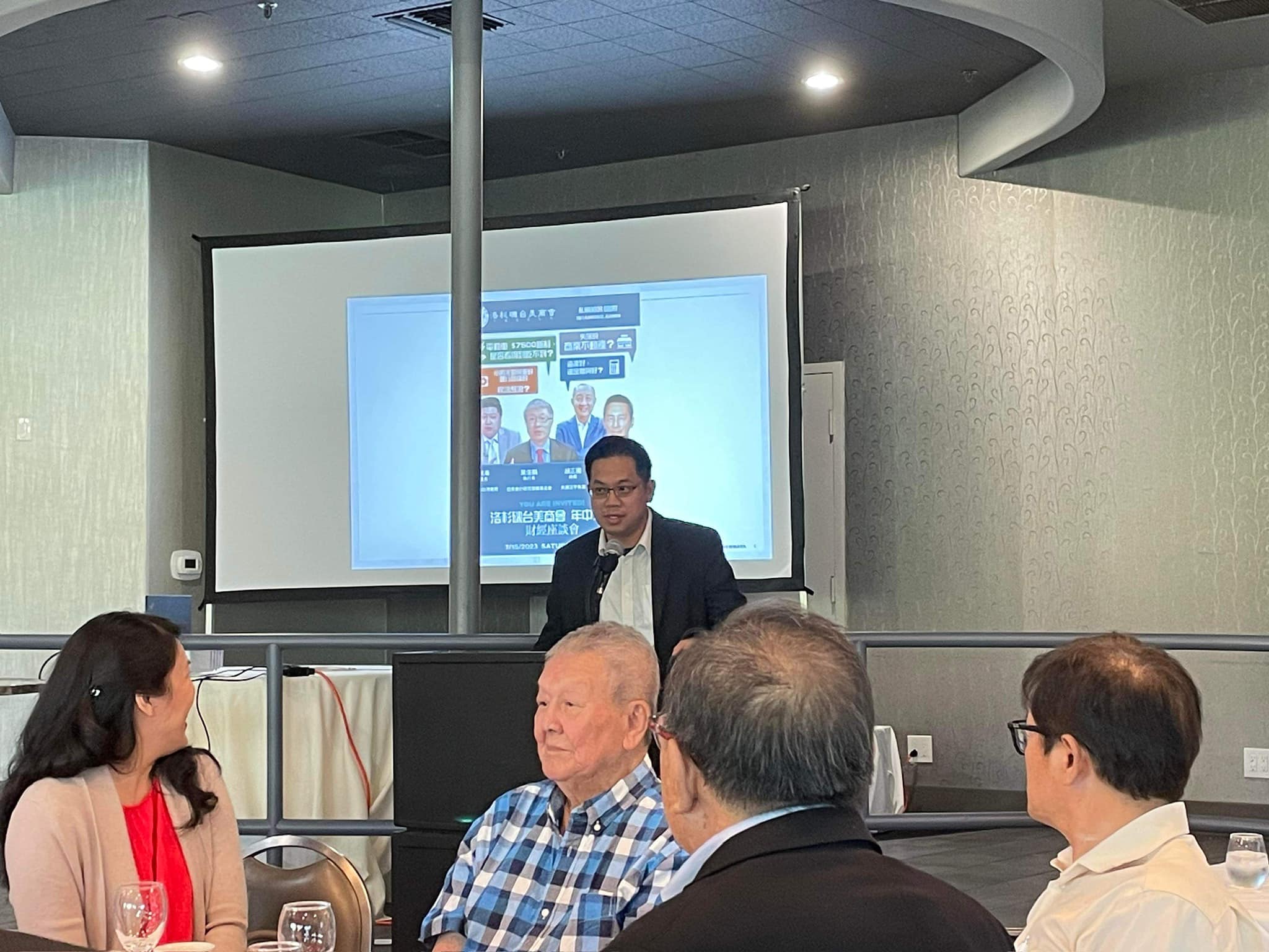 7月15日,駐洛杉磯科技組陳嘉元組長應邀出席洛杉磯台美商會財經座談會並致詞。