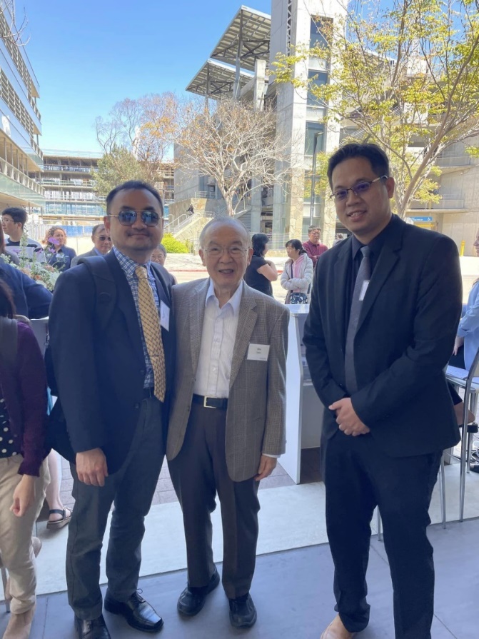 圖3:駐洛杉磯科技組陳嘉元組長與中央研究院錢煦院士(UCSD教授) 駐處台灣書院簡德源主任於UCSD台灣研究中心開幕時合影。