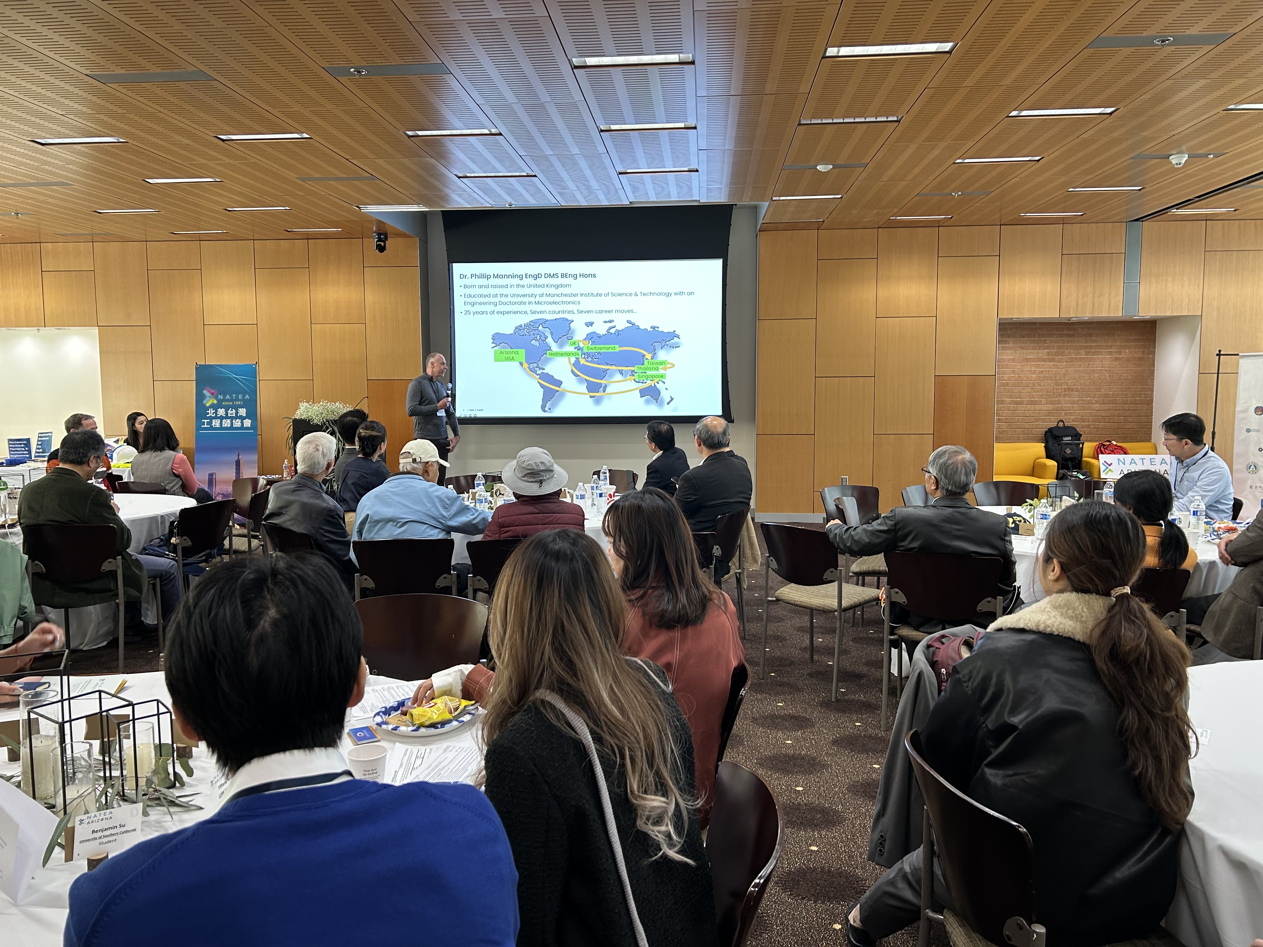 12月6日,周立偉組長偕王詩媛秘書出席北美工程師協會(NATEA)-亞利桑納分會舉辦之NATEA35週年年會暨科技高峰會,共有超過百位臺裔工程師、專家學者及美國科研人才參與,
