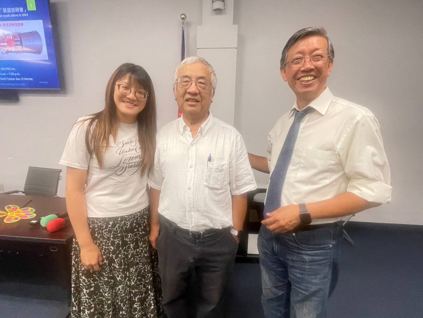 ↑王詩媛秘書(左)、鄭英傑總經理(中)、南加分會潘建宇會長(右)合影