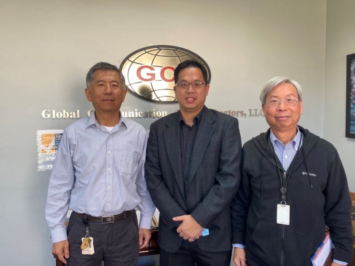 2月7日,駐洛杉磯科技組為瞭解美國地區產業發展及說明國科會相關政策,陳嘉元組長拜會美國Global Communication Semiconductors, LLC. (GCS)安寶信執行長及王志鴻副總裁。