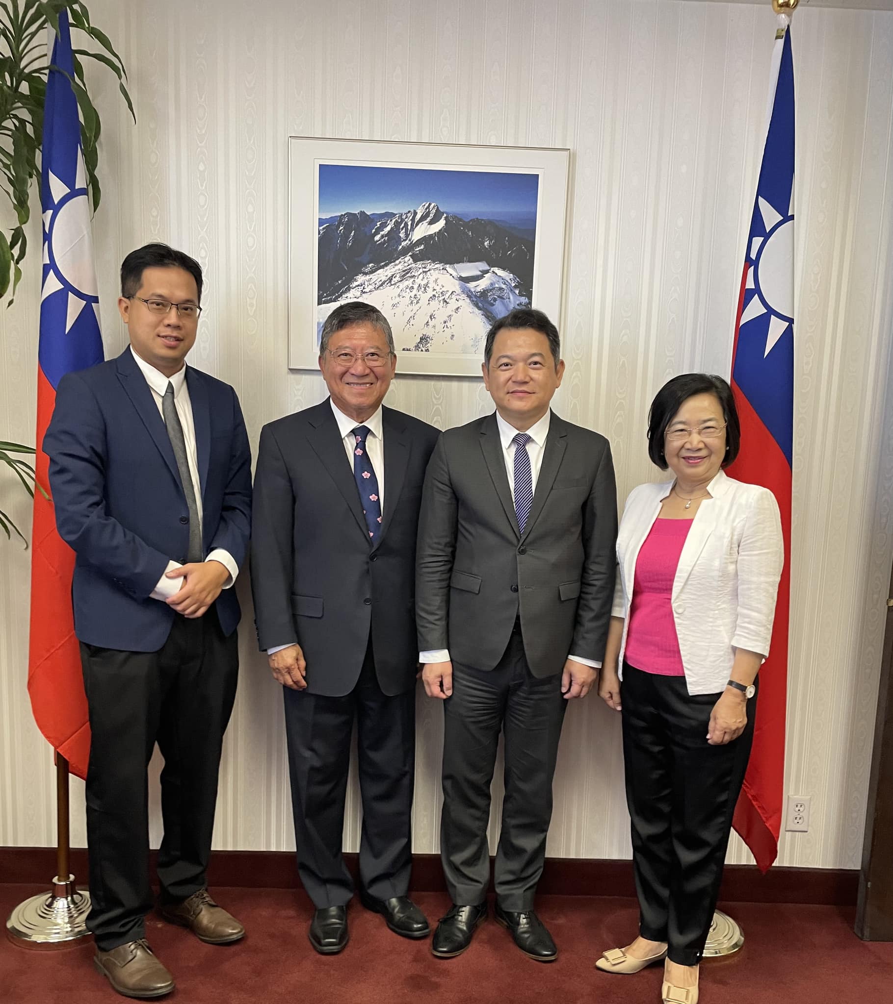 9月11日,駐洛杉磯科技組協助安排KOA工程公司林錫智總裁與車慶餘博士拜會駐洛杉磯辦事處紀欽耀處長,雙方對於台美科技及教育合作進行深度探討,持續強化雙邊交流。林錫智總裁曾任美國堪薩斯州顧問工程師協會會長、美國顧問工程師全國總會常任理事、四屆美國堪薩斯州黎霧市(Leawood)市議員、南加鑽石吧市長,從事建設工程設計。車慶餘博士現為南加州中文學校聯合會會長及聖瑪利諾中文學校校長,致力投入僑教事業。
